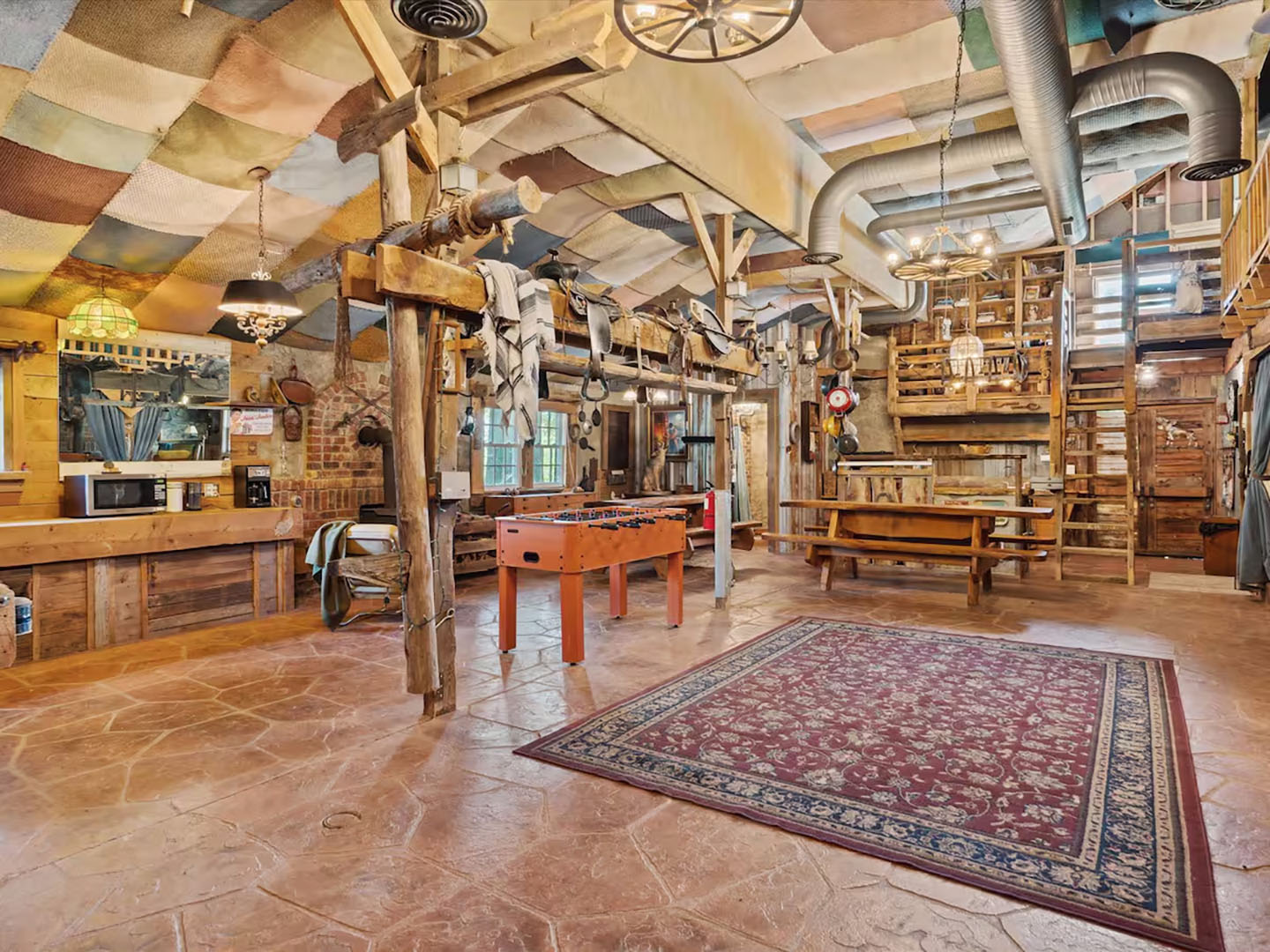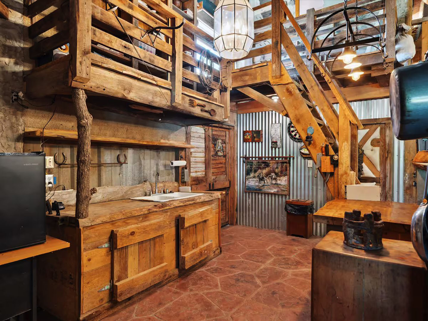 Guests have full access to the Vintage Gathering Barn, including the kitchen, which is stocked with utensils, pots, pans, glasses, and other essentials. The unit includes one bathroom for guest use. Please note that bedding and personal items should not be disturbed while guests are using the Gathering Barn for events. The wood-burning stoves are only available for hosted events.
